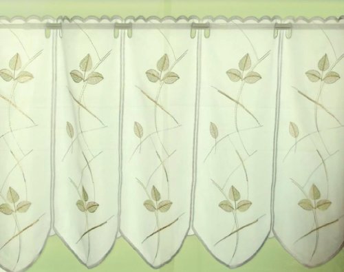 Farbe: weißer zarter Voile mit Stickerei in grün und weiß Material :100% Polyester empfohlene Fensterbreite:95-110 cm- so hängt sie relativ gerade. Pflege:waschbar bei 30°C nach dem Waschen tropfnass aufhängen Größe : 45 cm hoch und 115 cm breit