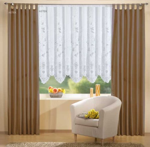 Gardinen Set, 2 x Deko Taft Vorhang, Schlaufen, 245x140, Nougat, 1 x Jacquard Store, Fertig Gardine, 145x450, 2031013115