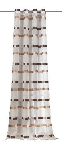 mit Schlaufen für alle gängigen Gardinenstangen Ösenschal aus modernem Querstreifen, tolle Qualität aus transparentem Voile Maßangaben entsprechen Stoffmaß - je nach Dekoration kann die Dekobreite variieren farblich abgestimmte Querstreifen harmonieren in Ihrem Ambiente Material: 100% Polyester, verpackt im Karton