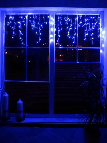 30 Lichterstränge Stück a´ 2 - 6 LED´s 120 Bunte LED (rot, gelb, grün, blau im wechsel) Breite des Vorhangs - 2 m + 1,5 m Zuleitung ohne Blinkfunktion Transparentes Kabel, koppelbar