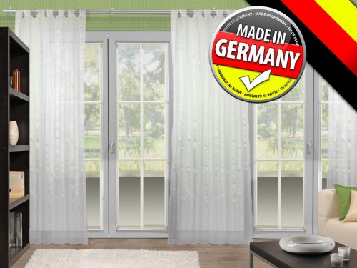 Schlaufenschal Optima - Made in Germany - 100% Polyester, Schonwäsche bis 30 Grad mit Schlaufen und Kräuselband - Höhe ca. 245 cm, Stoffbreite ca. 142 cm 1 Schal in der Farbe weiß - halbtransparent Lieferumfang: 1 Stück - für die komplette Dekoration eines Fensters gleich 2 Stück bestellen! -