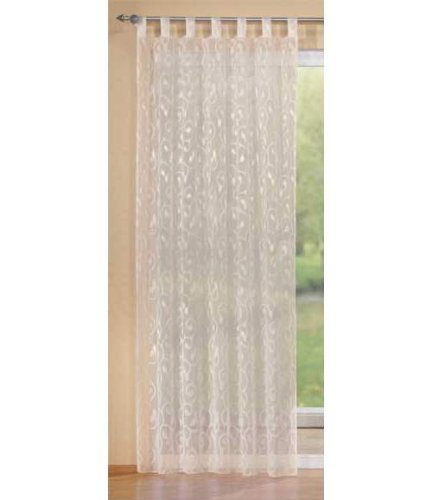 Transparente Gardine mit Schlaufen und eingewebten Sherly Mustern, Bleibandabschluss, 245x140, Creme, 61111 Feature