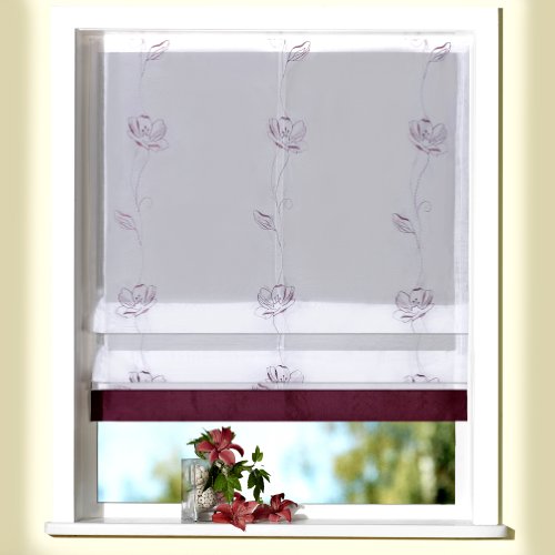 Wohnprofi Voile Raffrollo Lauretta mit Blumenranke Stickerei + Blende (beere, 130X120 CM) Feature