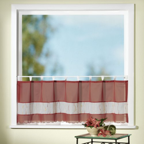 Wohnprofi Voile Scheibengardine Anna mit Schlaufen und Stickerei (Einzel Scheibengardine, rot, 45X150 CM) Feature