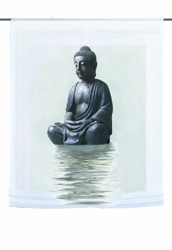 Mit "Buddha"-Motiv digital bedruckt, 100% Polyester Einfach Aufhängen und Fertig! Höhenverstellbar durch Stoppertechnik, inkl. komplettem Zubehör zur leichten Montage Aufhängung mittels beigelegtem Flausch- und Klettband, inkl. Trägerschiene mit Tellergleitern Raffrollo aus transparentem Voile, digital bedruckt