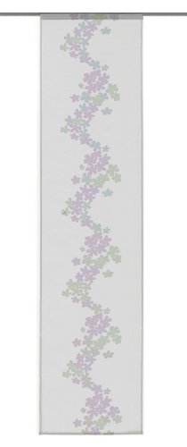 Einfach Aufhängen und Fertig! Schiebevorhang aus blickdichtem Deko-Ausbrenner mit modischem Blumenwellen-Motiv; transparente Stellen zusätzlich bedruckt, 70% Baumwolle - 30% Polyester Aufhängung mittels Flexoschiene mit eingehängten Gleitern für alle gängigen Gardinenschiene Inkl. Komplettem Zubehör für kinderleichte Montage