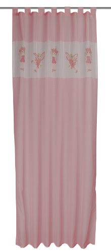 Abschluss gesäumt Schlaufenschal aus transparentem Voile Einfach Aufhängen und Fertig! mit besticktem Einsatz, Motiv: "Fee"; 100% Polyester Aufhängung mittels Schlaufen für Gardinenstange