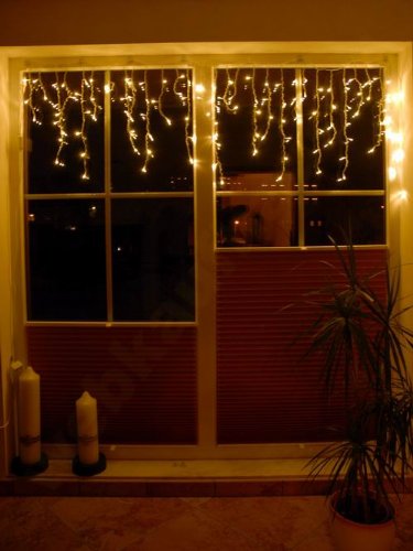 LED Vorhang mit 120 gelbe LED Breite des Vorhangs - 2 m + 1,5 m Zuleitung transparentes Kabel, koppelbar ohne Blinkfunktion 30 Lichterstränge Stück a´ 2 - 6 LED´s